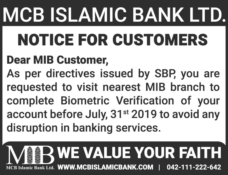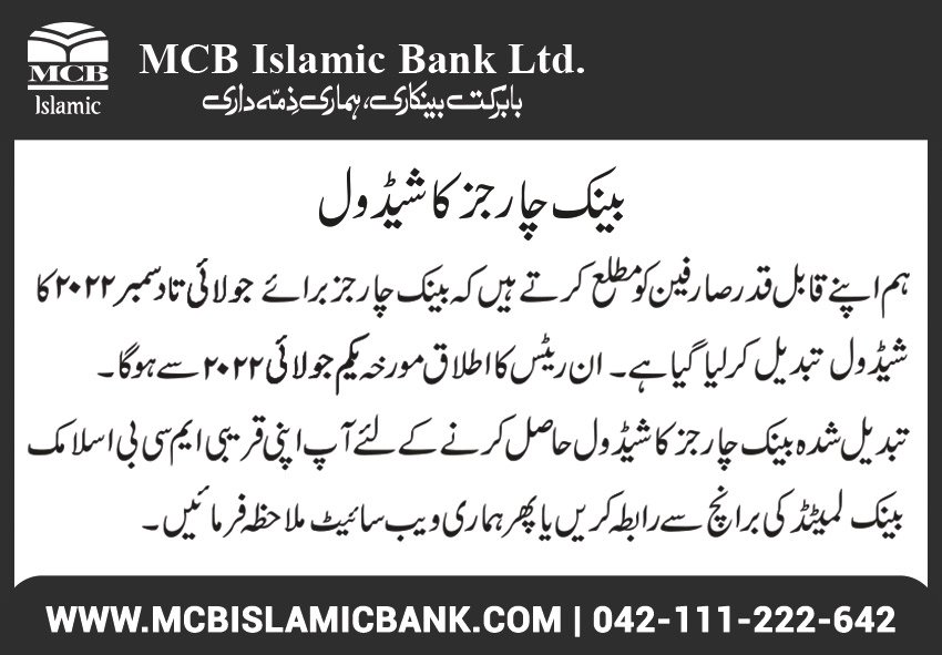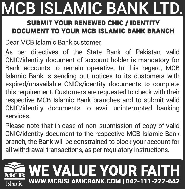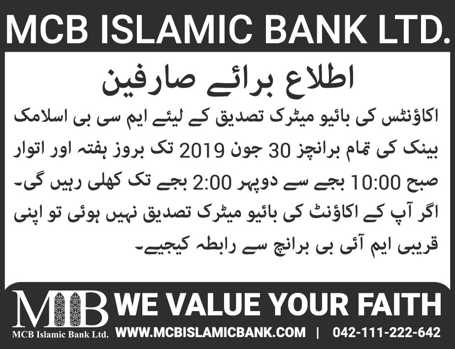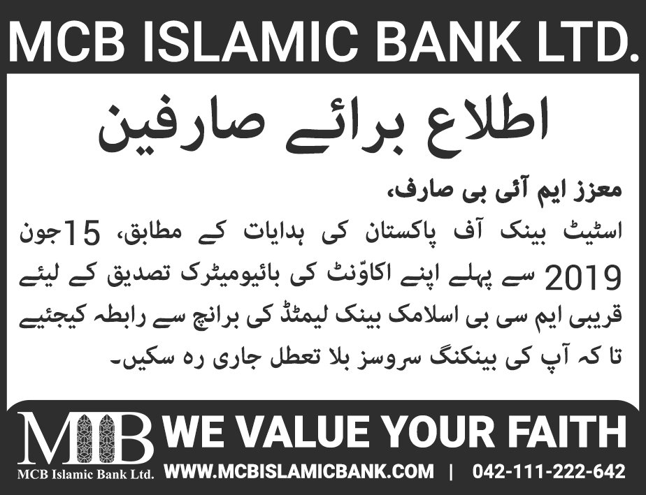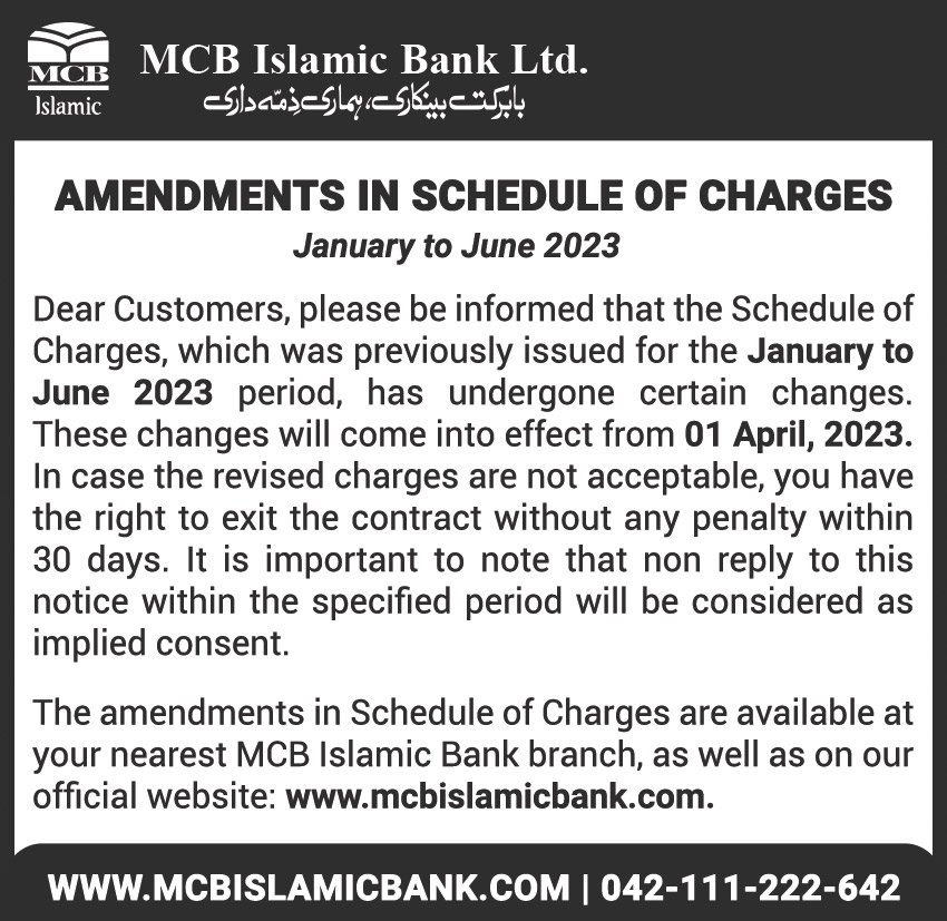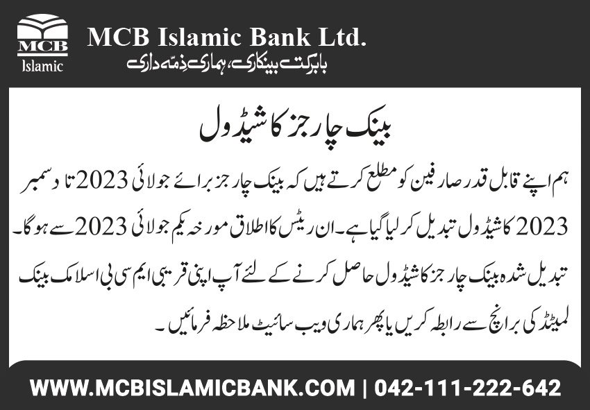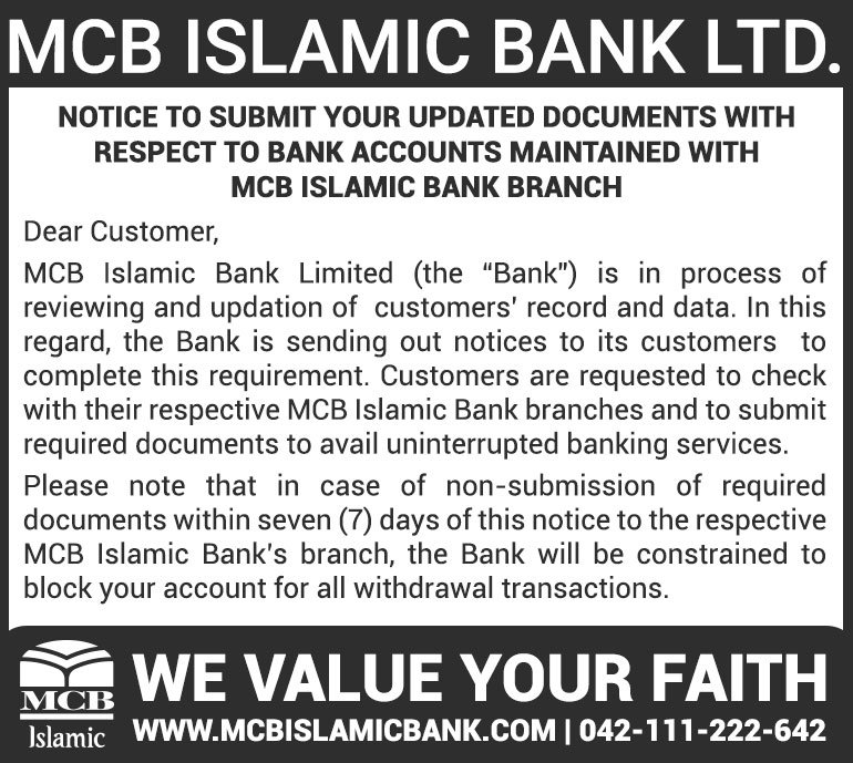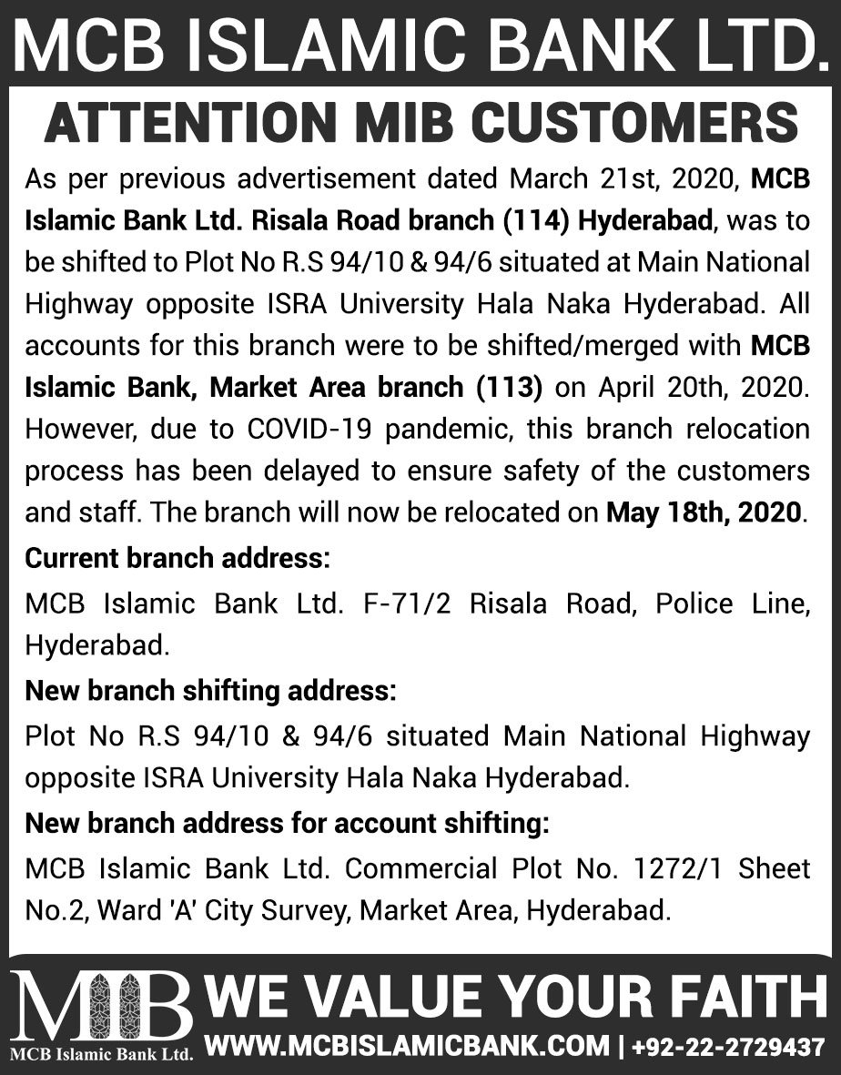 Closure of MCB Islamic Bank Shahdadpur and Halanaka, Hyderabad Branches