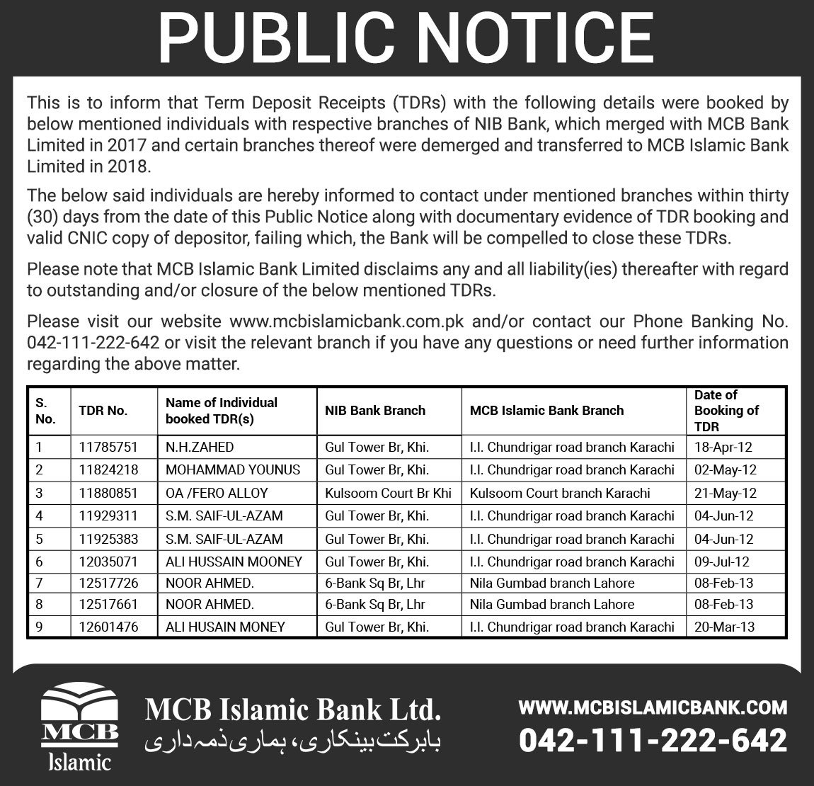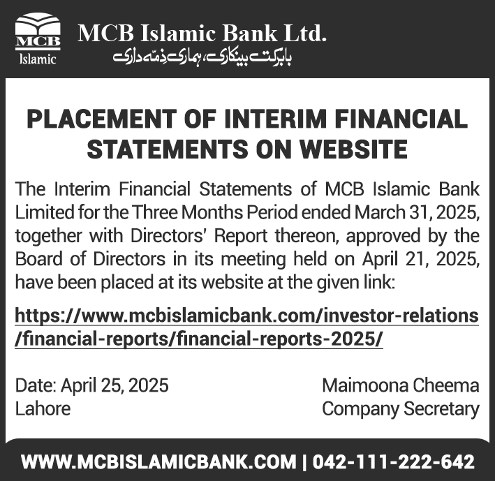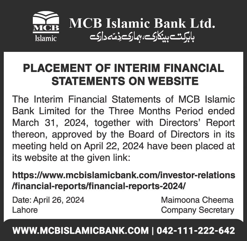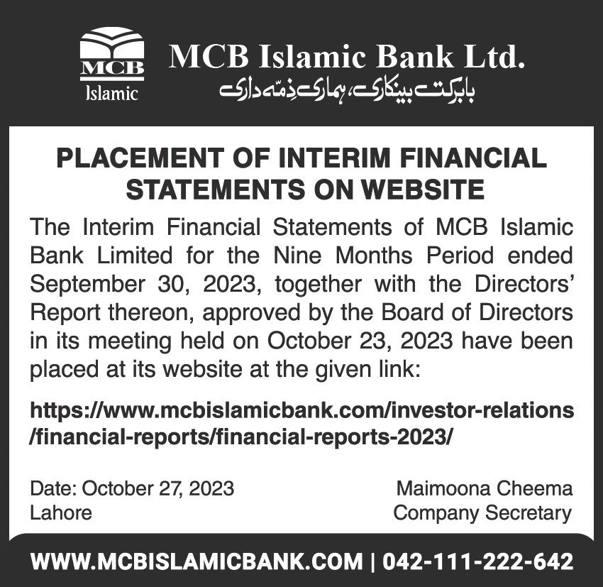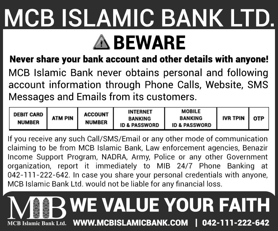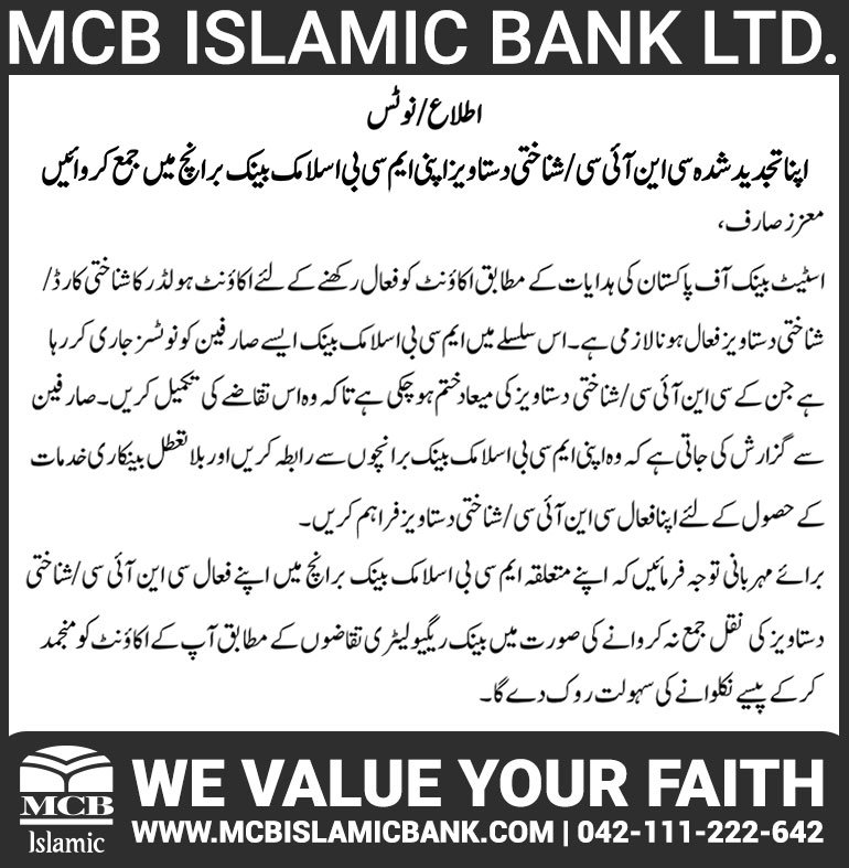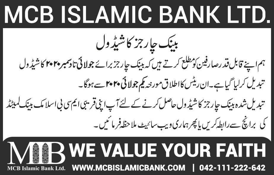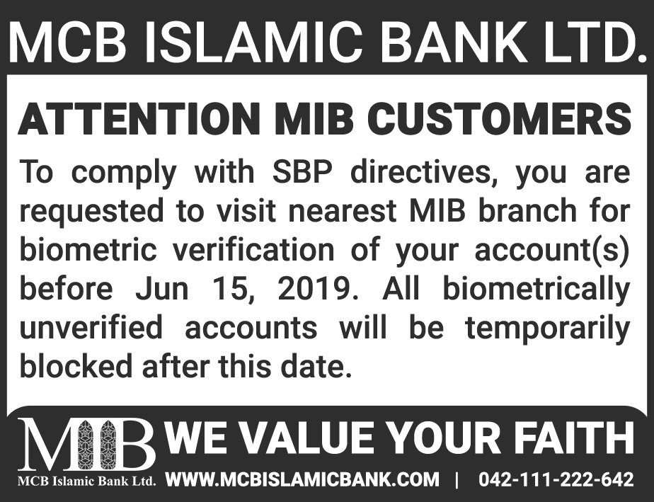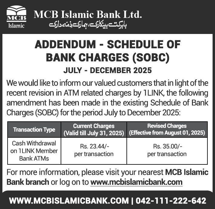 Closure of MCB Islamic Bank Shahdadpur and Halanaka, Hyderabad Branches