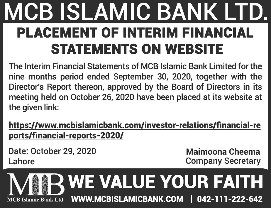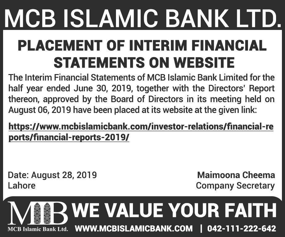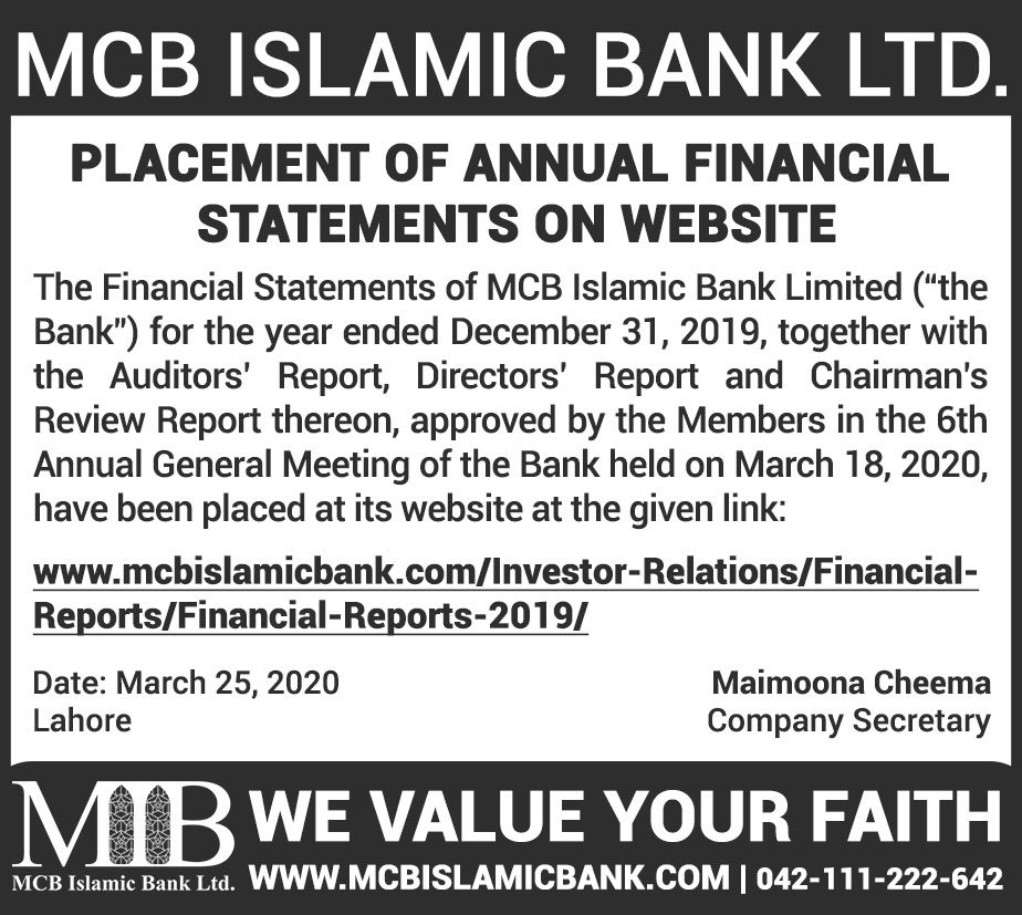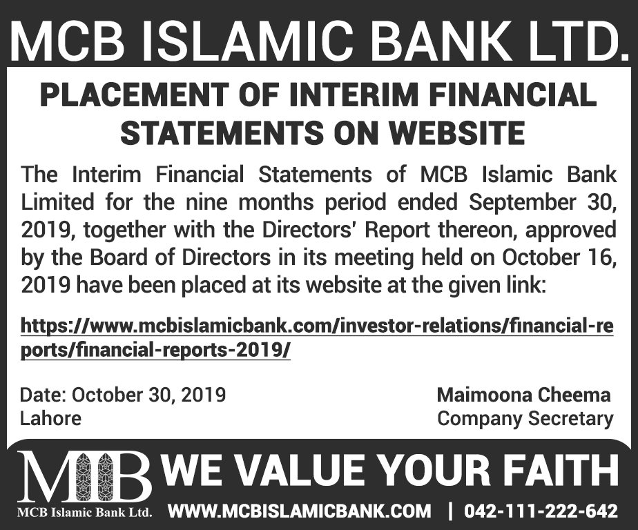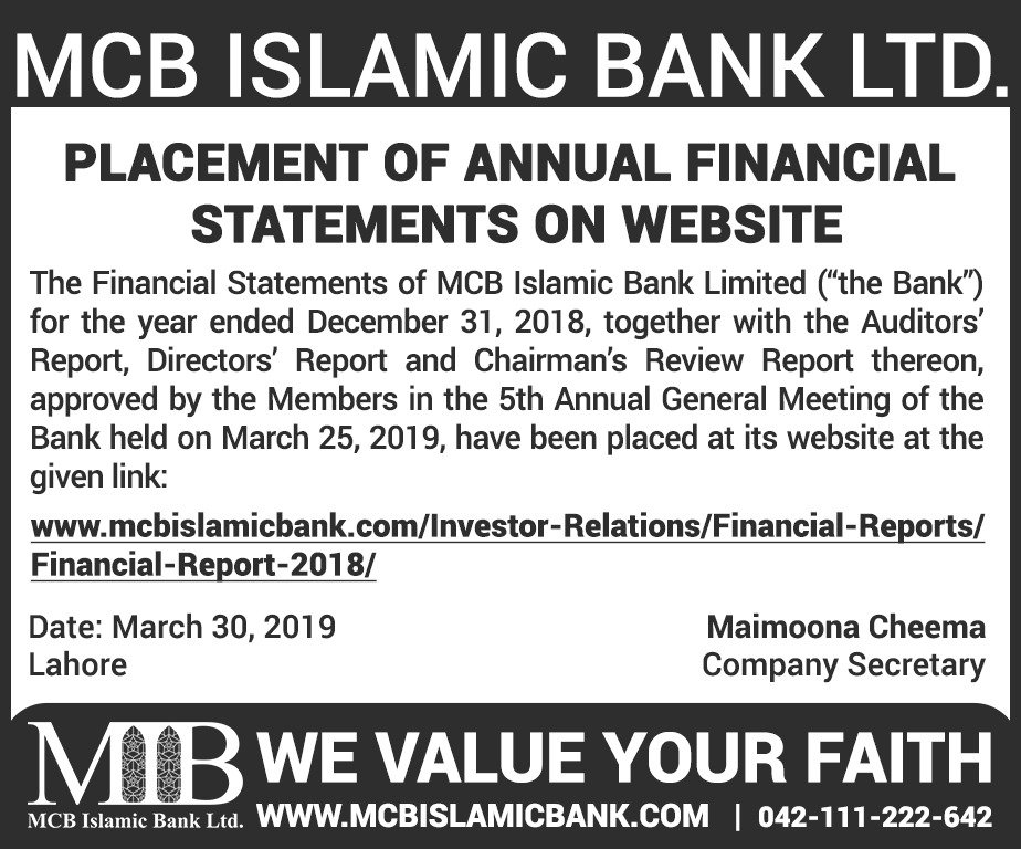MCB Islamic Bank Financial Statements 2019