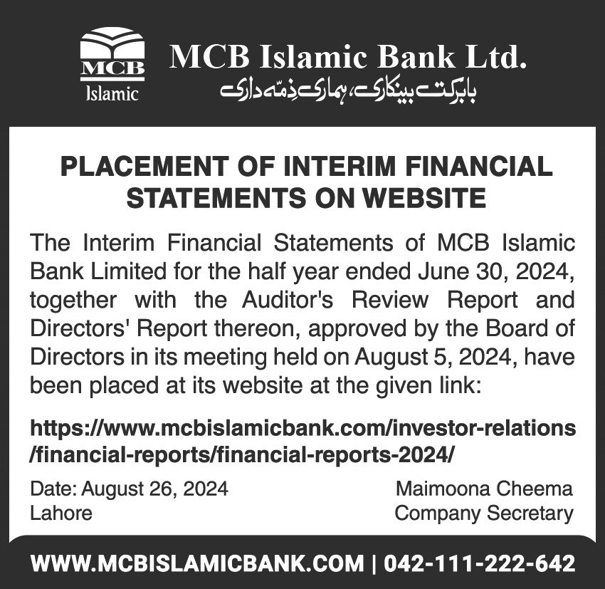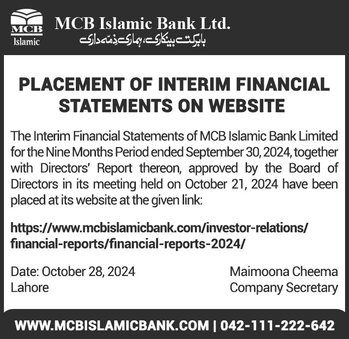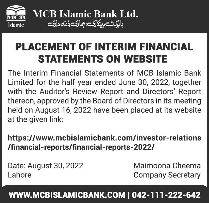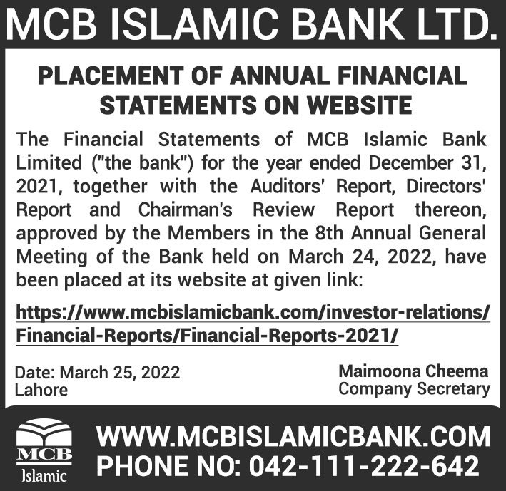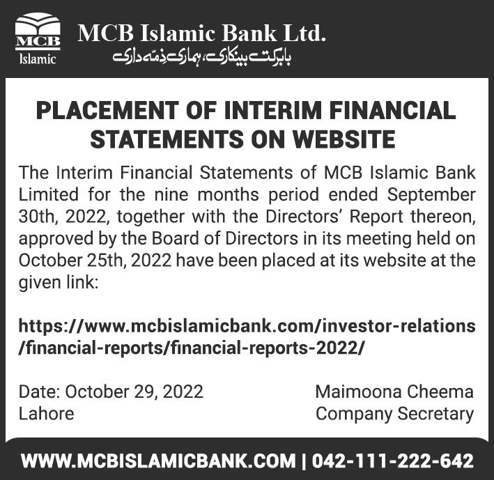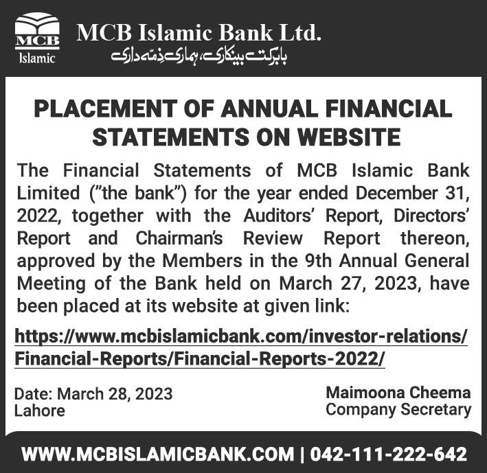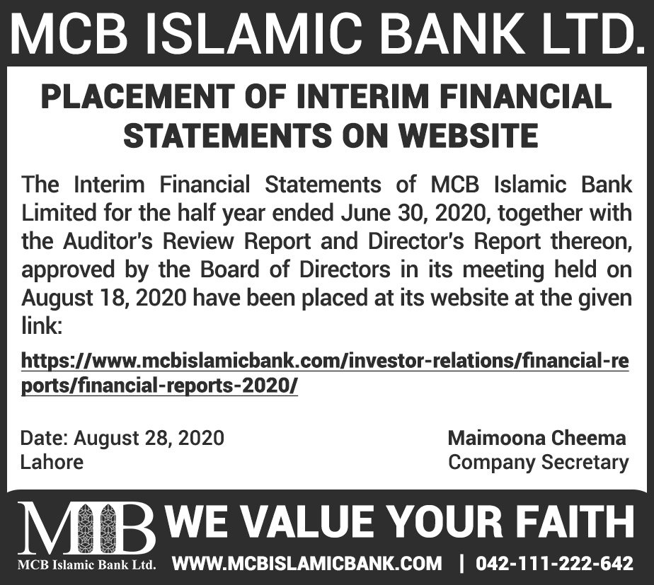 MCB Islamic Bank Financial Statements 2019