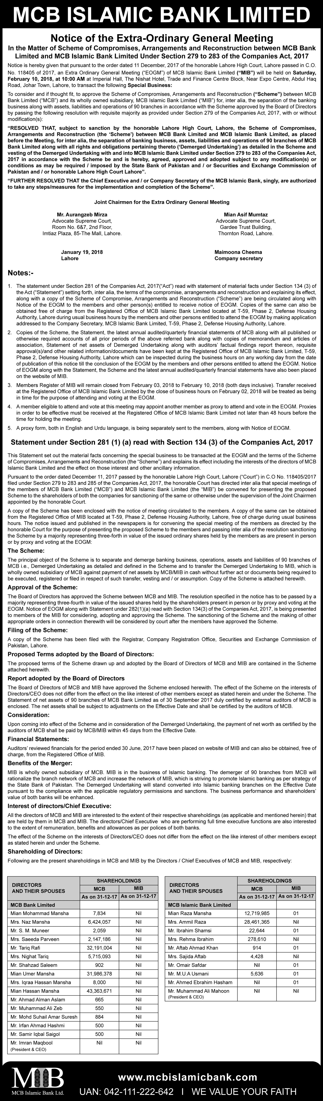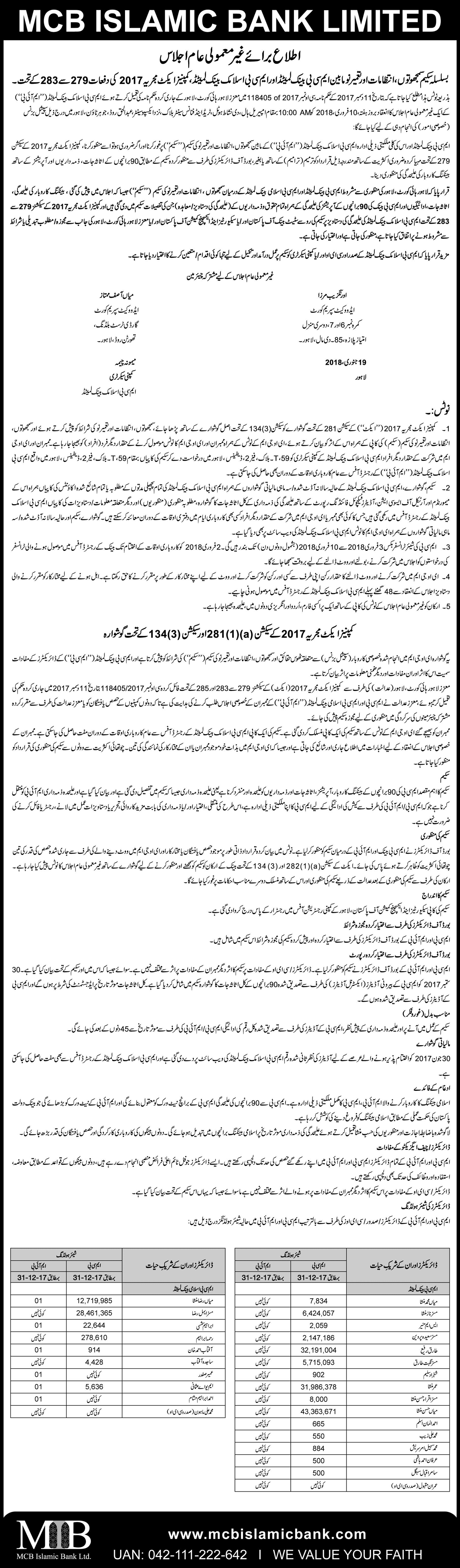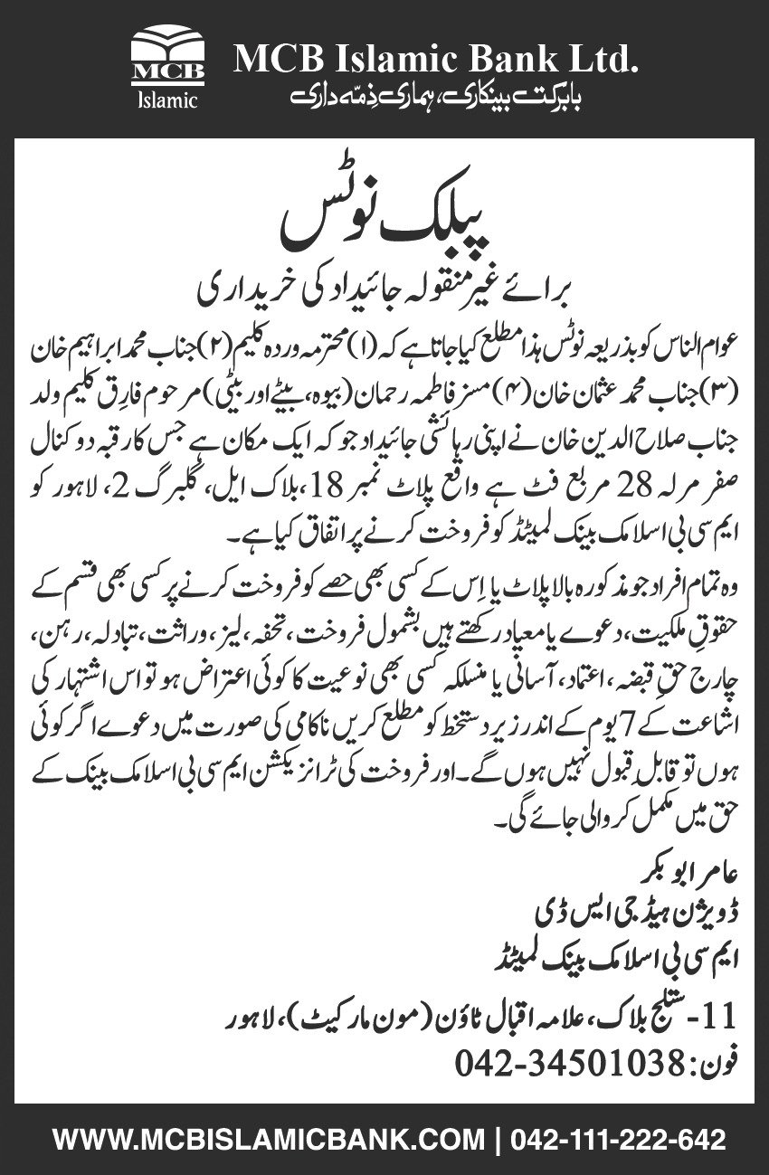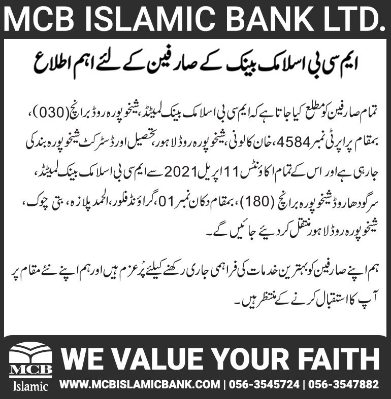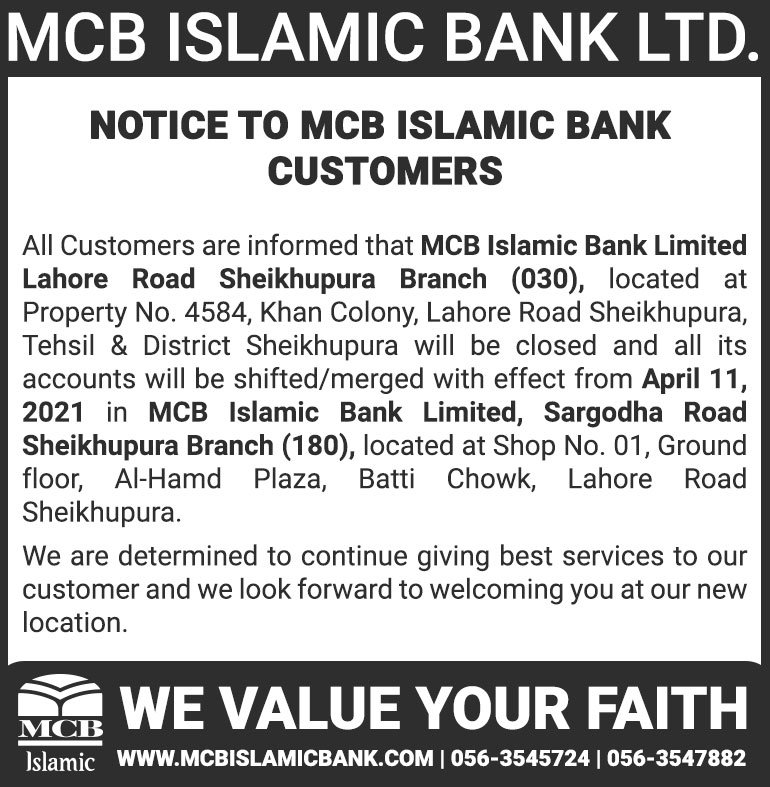 Closure of MCB Islamic Bank Multan Road Branch, Lahore