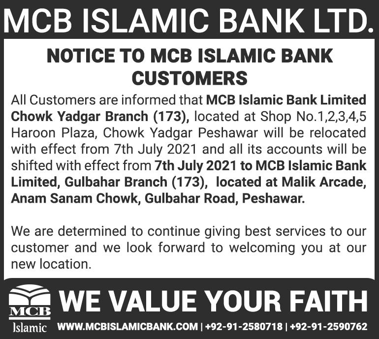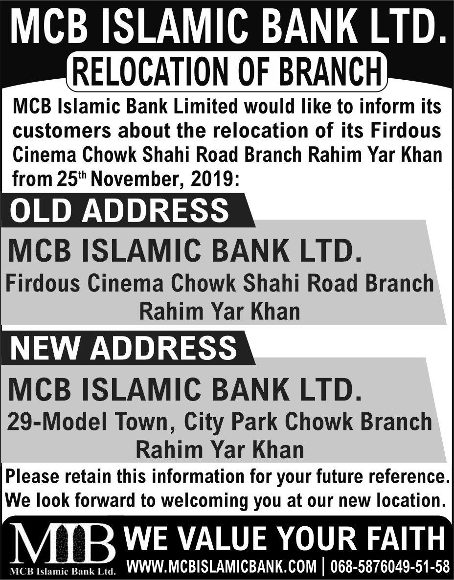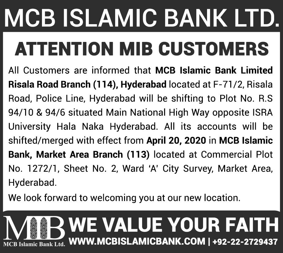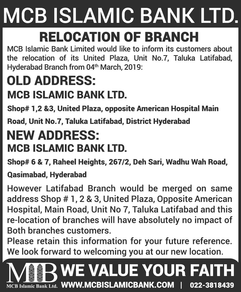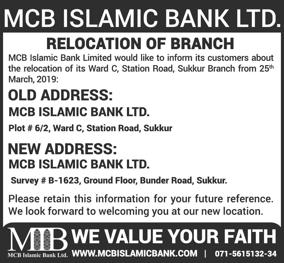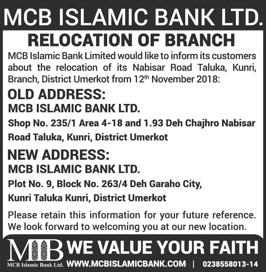 Relocation of MCB Islamic Bank Mirpurkhas Branch