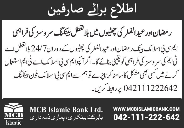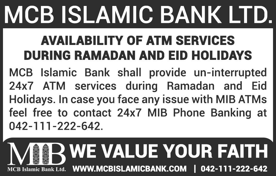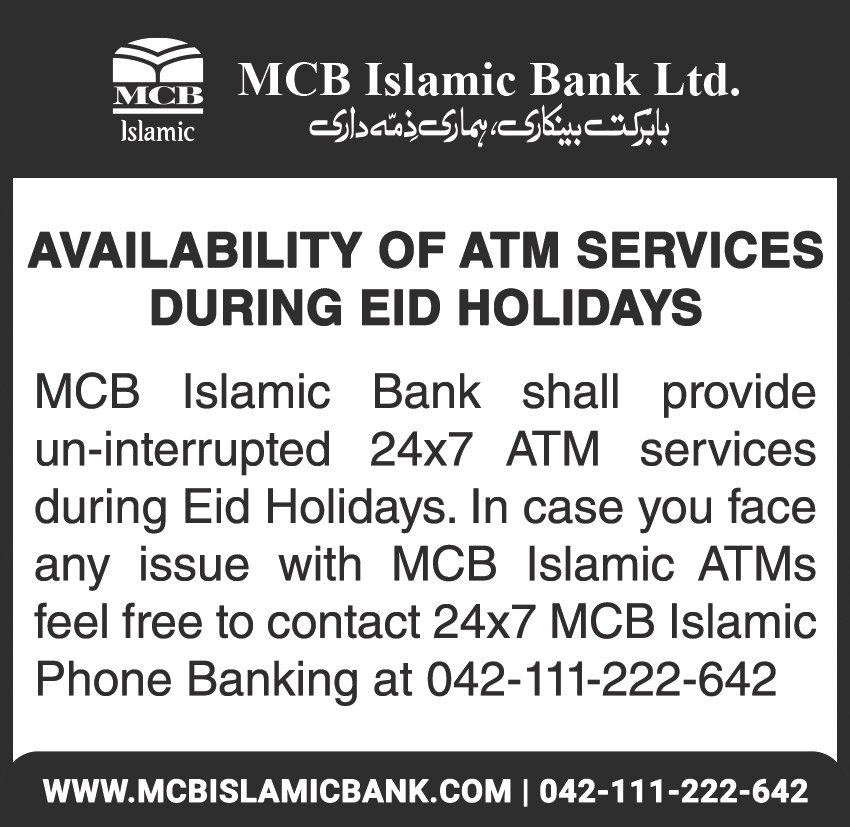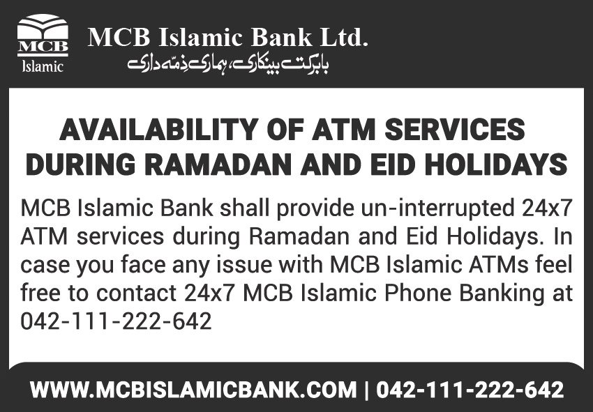 Availability of ATM Services during Ramzan and Eid Holidays