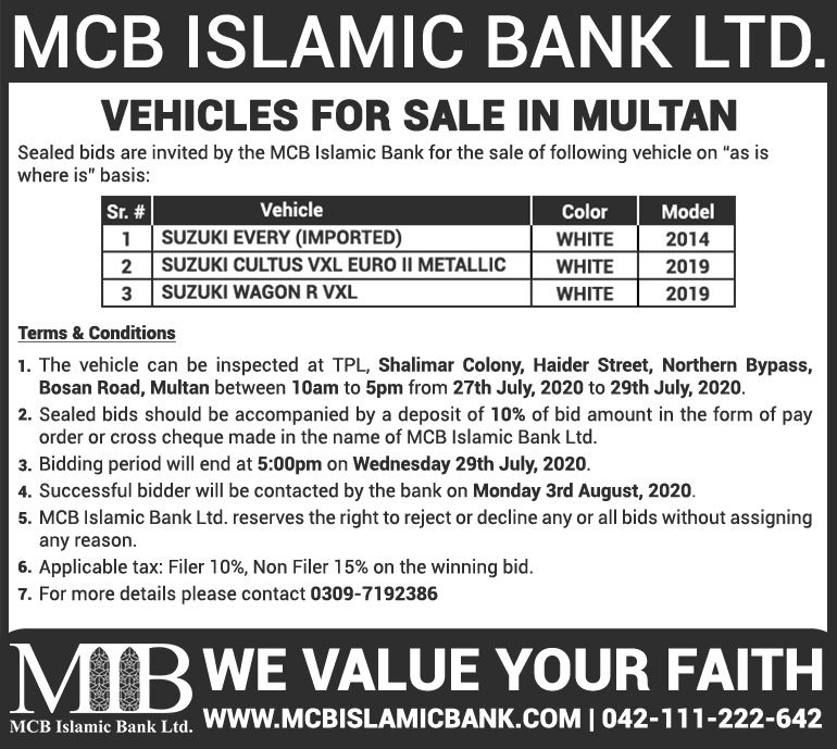Auction Ad –Vehicles for Sale in Multan