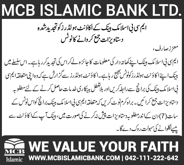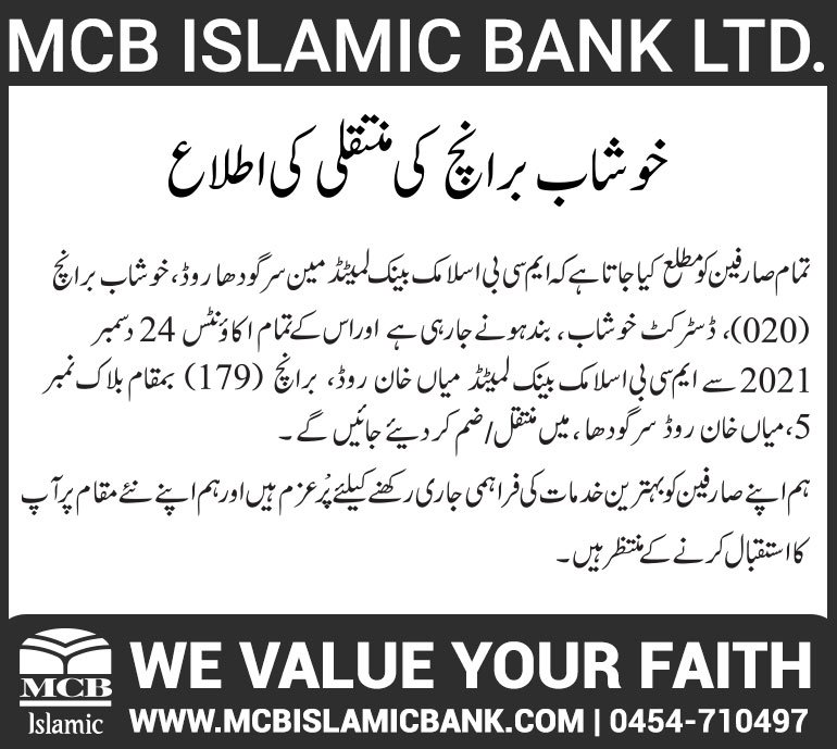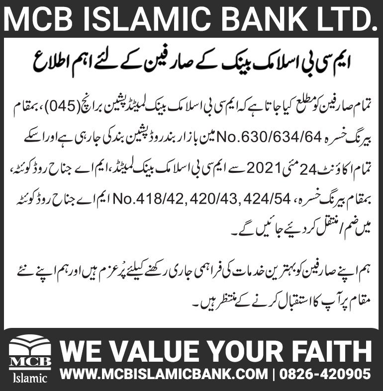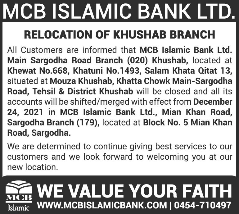 Closure of MCB Islamic Bank Khushab Branch