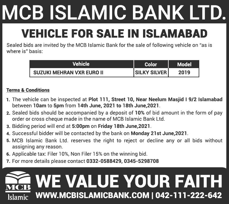 Auction Ad – Vehicle for Sale in Islamabad (June 13, 2021)