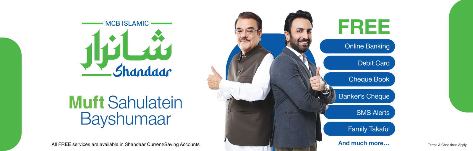 The aforementioned benefits are specific to MCB Islamic Shandaar (current and saving) Accounts only and shall not be available to any other account of the MCB Islamic Shandaar (current and saving) accountholder.